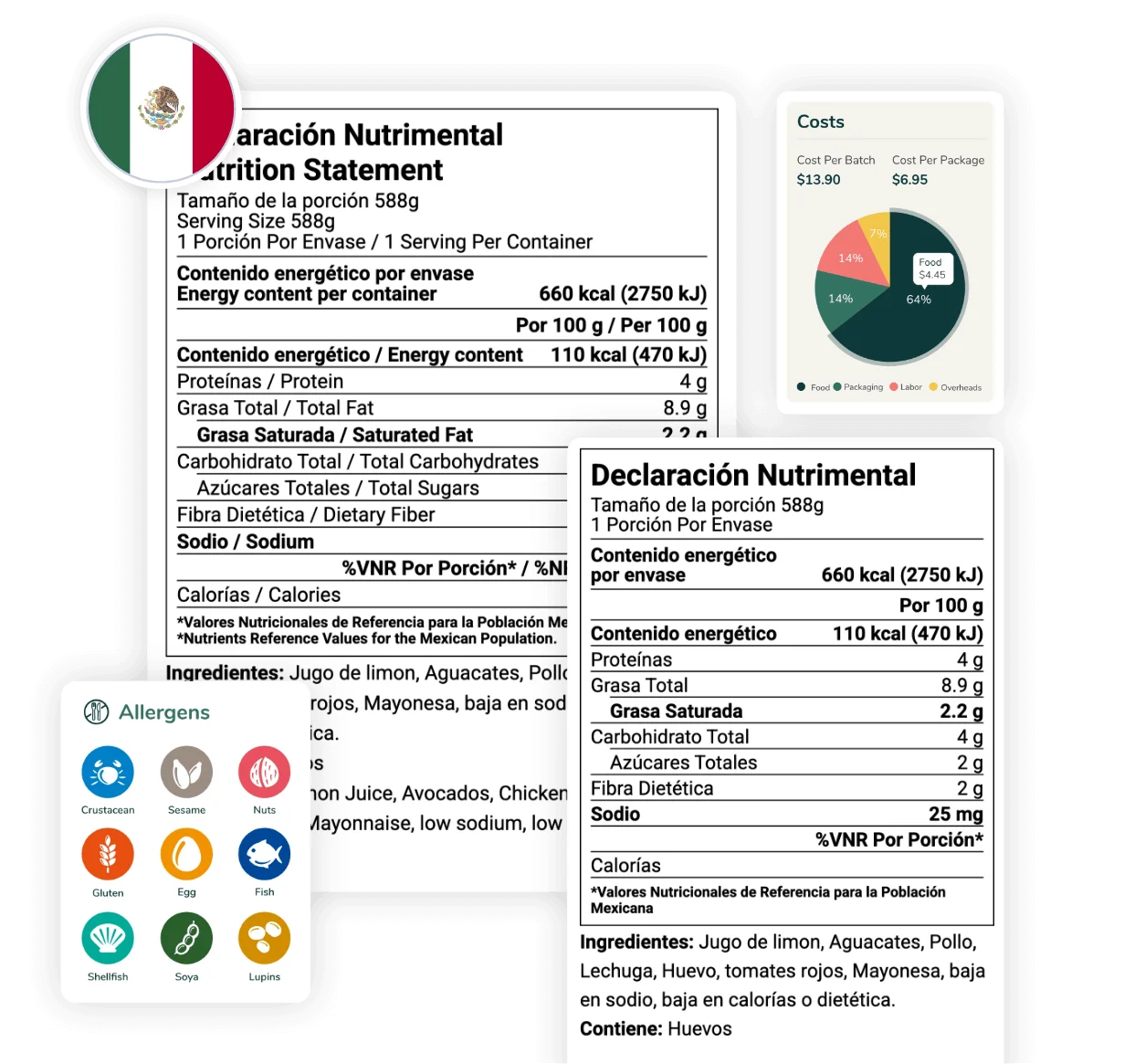 For food manufacturers seeking to streamline operations or scale their business, speed, accuracy and compliance are non-negotiable. Our software integrates recipe costing and nutrition analysis into one workflow, allowing you to generate NOM-051 compliant nutrition labels for hundreds of recipes in an instant. Manage control and ensure consistency across all your packaged goods.