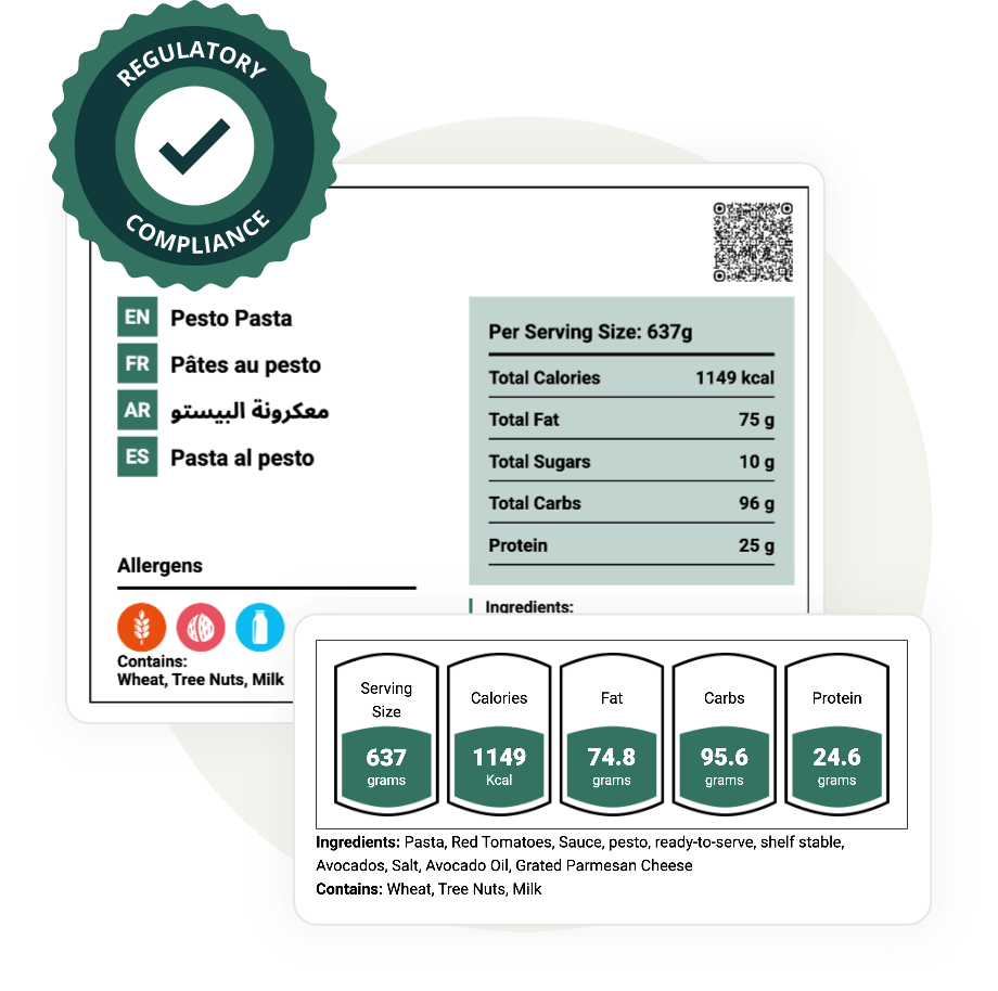 Automatically generate detailed allergen data for each dish and ensure compliance with local and international food labeling and safety regulations