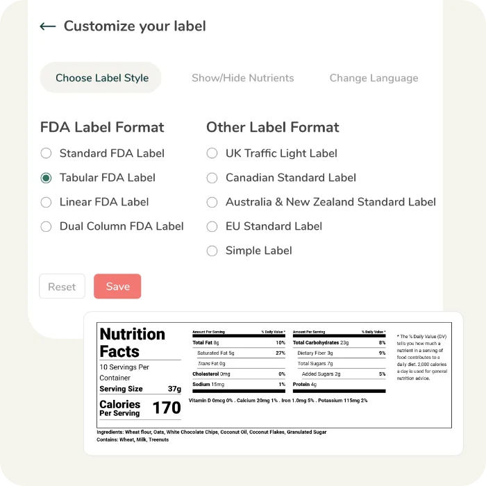 Easy and Compliant Nutrition Label Software