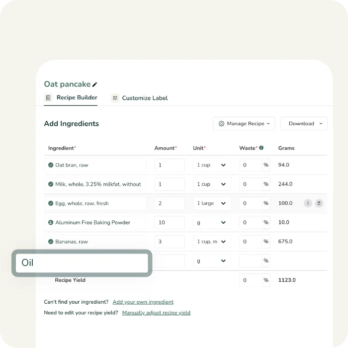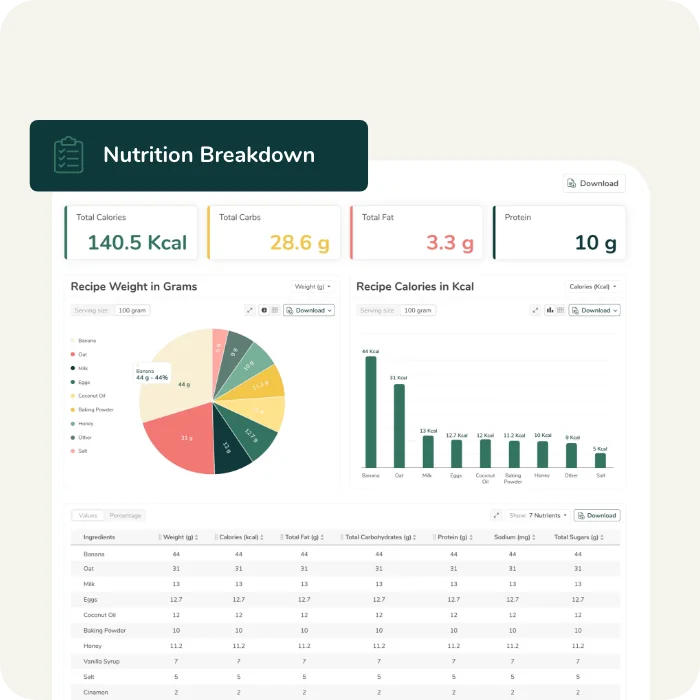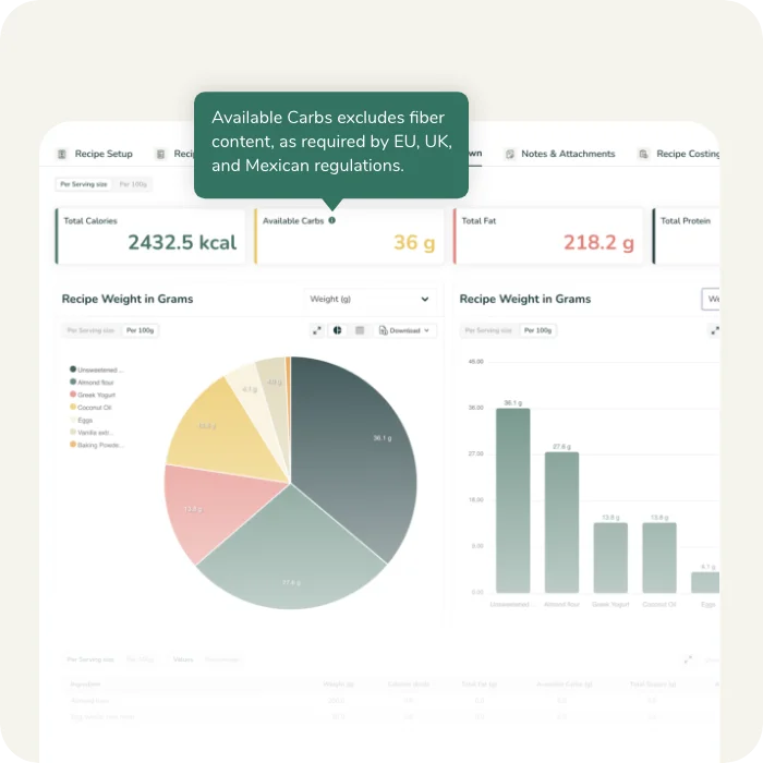 - Standardized Calculation: Convert your recipe data into a 100g/100ml format.