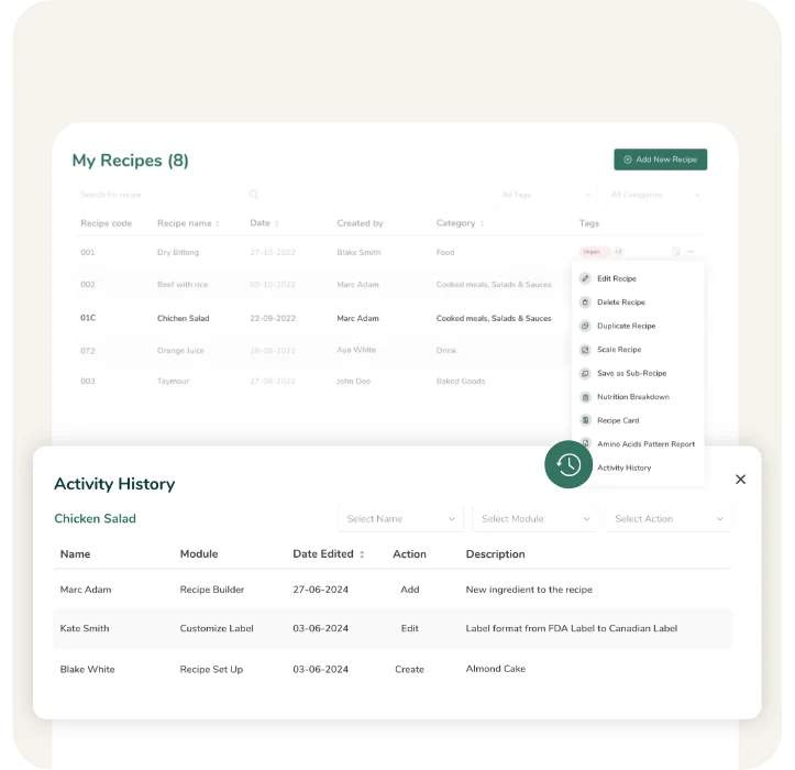 Ingredient & Recipe Activity History