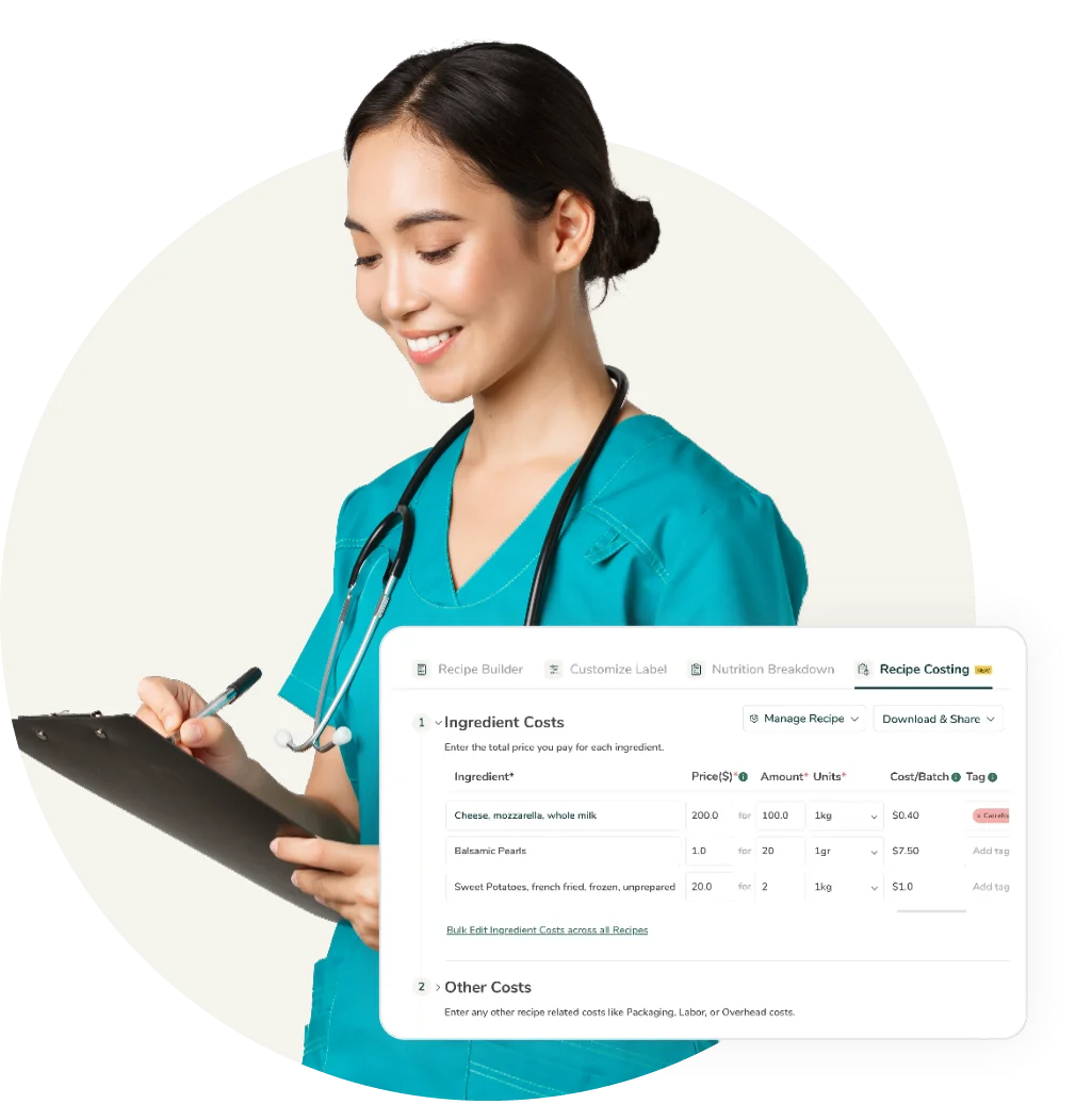 - Recipe Costing & Management: Calculate your costs and manage your menus alongside your nutrition data.