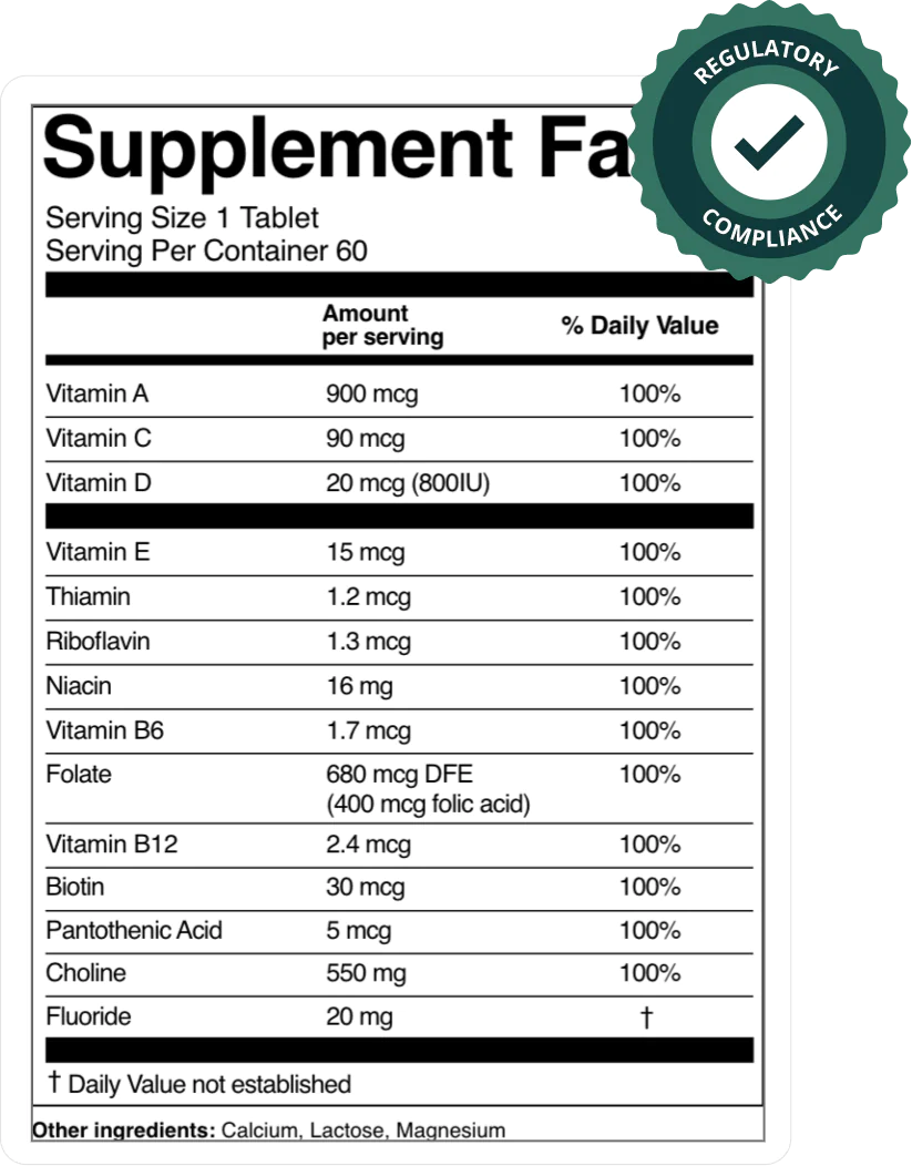 Don’t leave compliance to chance. Our dedicated regulatory team offers comprehensive label audits to verify every detail against strict FDA Supplement Labeling Guidelines.