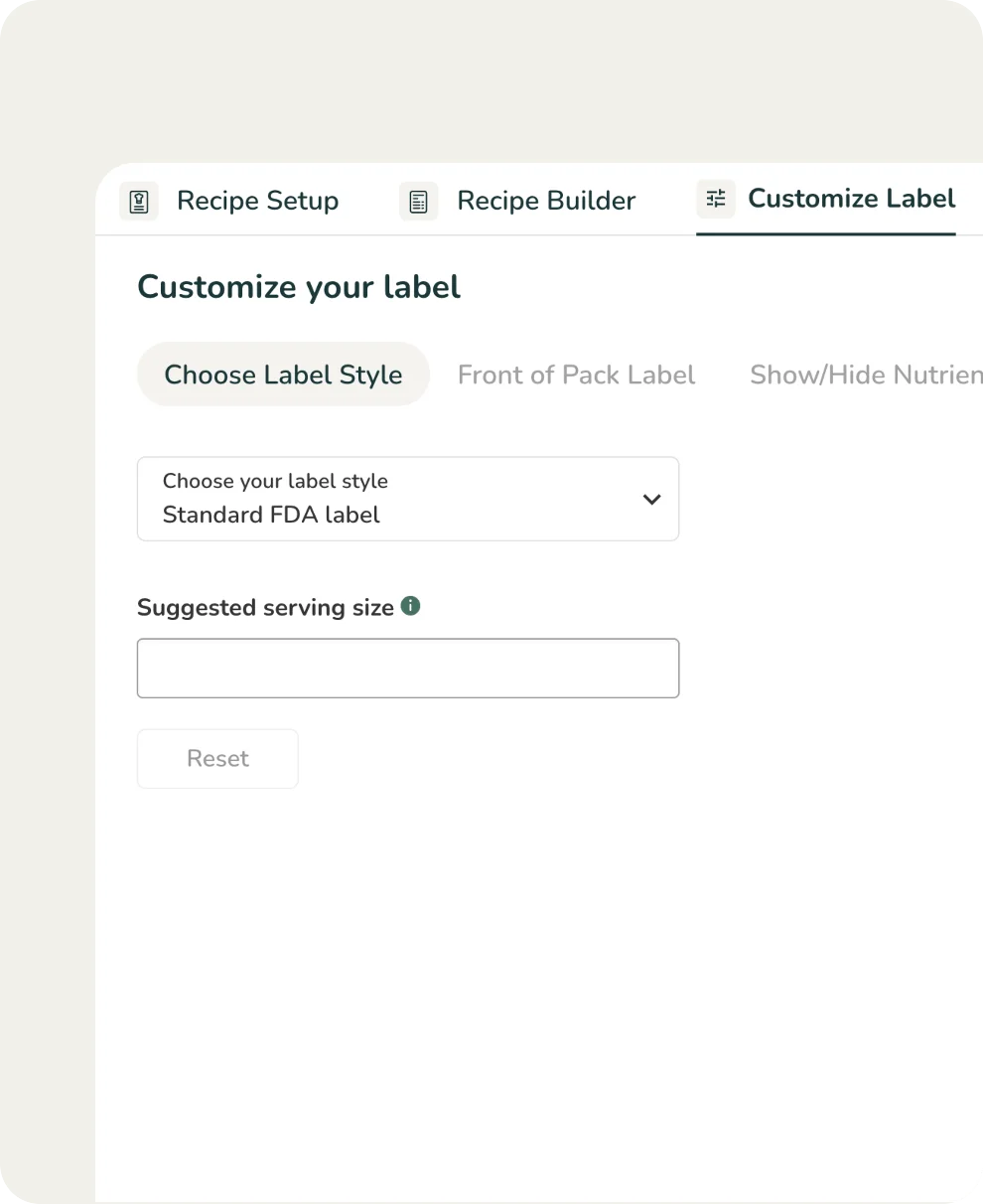 Once you’ve selected your desired recipe, scroll through the top bar of the tool and select the “Customize Label” option.