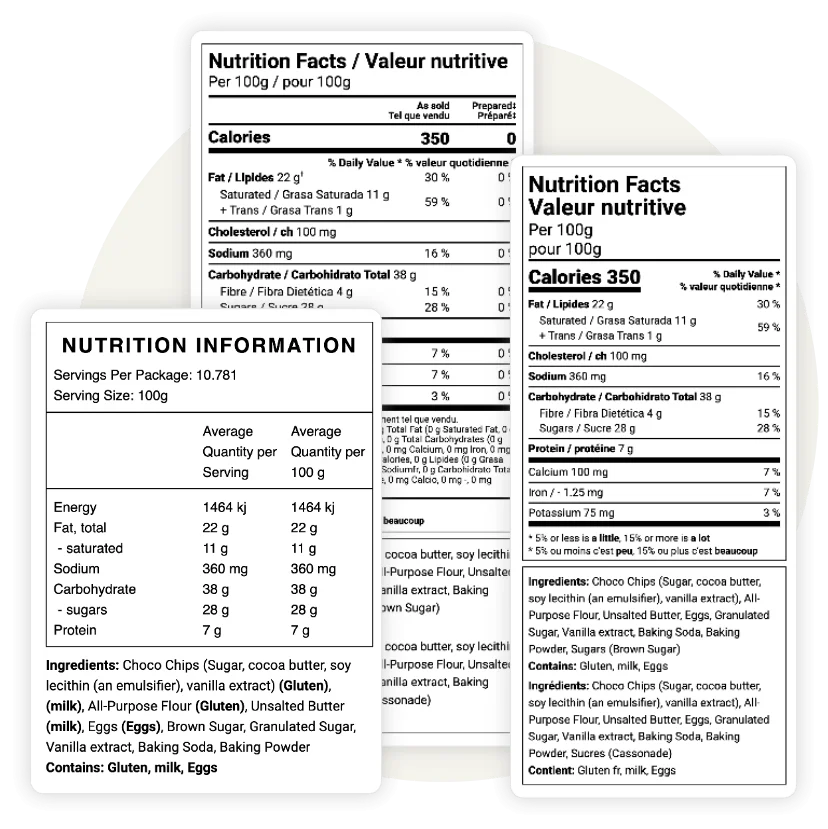 Our platform streamlines the creation of nutrition facts labels, ensuring accurate allergen information and ingredient lists.