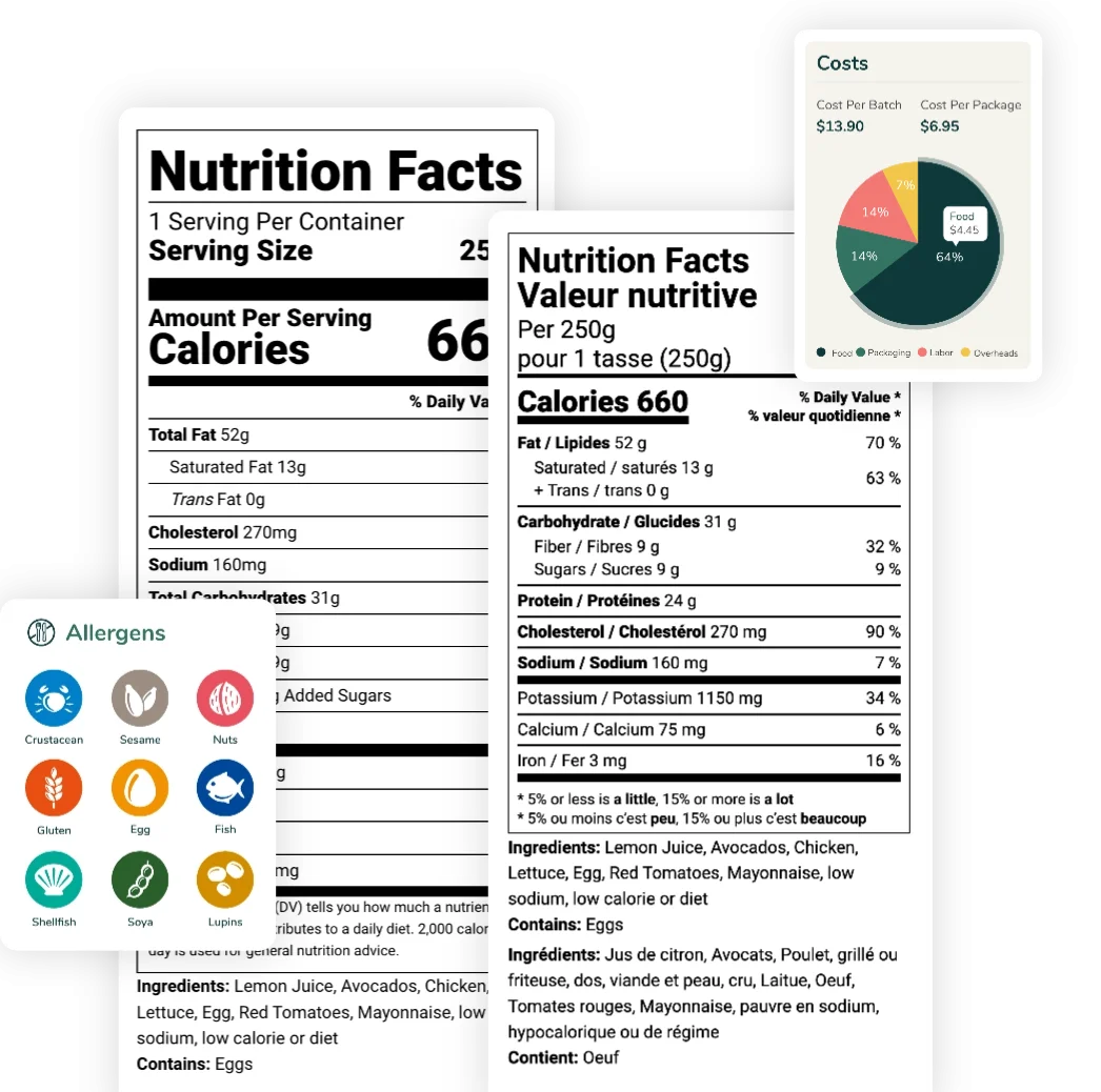 Our nutrition label maker helps you generate audit-ready labels, automate allergen detection, and manage your recipes in one secure platform.